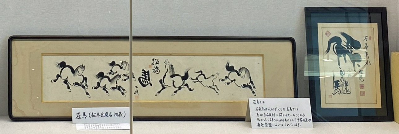 南区蒔田の老舗豆腐屋さんの古色蒼然たる「左馬之図」です。これは商売繁盛・招福を願う縁起物で、「馬」の字を左右反転させ、人が馬を引くのではなく、馬が人を引くこと、すなわち客を招き入れることを意味しております。この「左馬」にあやかり、南区郷土の歴史研究会も大きく飛躍したいと思います。